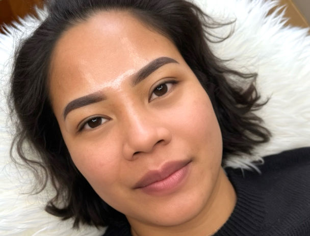 BROW TATTOO (1-1.5 HRS): Once the brows are numb, your artist will resume the brow tattoo. Several passes of shading are done on the brows to build up the colour. Numbing cream is applied throughout the procedure to ensure the client is comfortable.